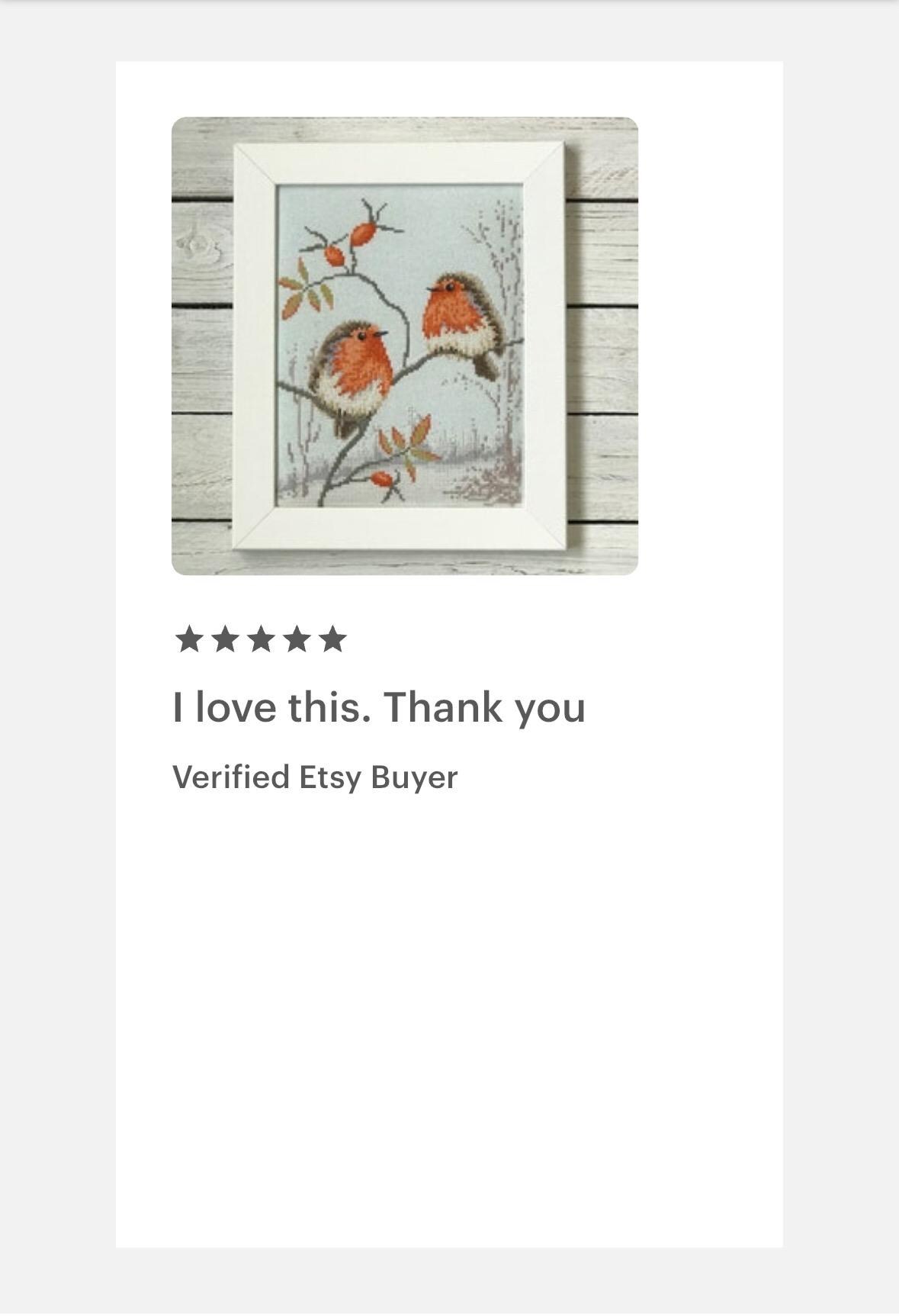 Lose yourself in nature with Lucie’s enchanting cross stitch design, featuring two gorgeous robins, fluffed up and perched on a branch on a magical frosty winters day.