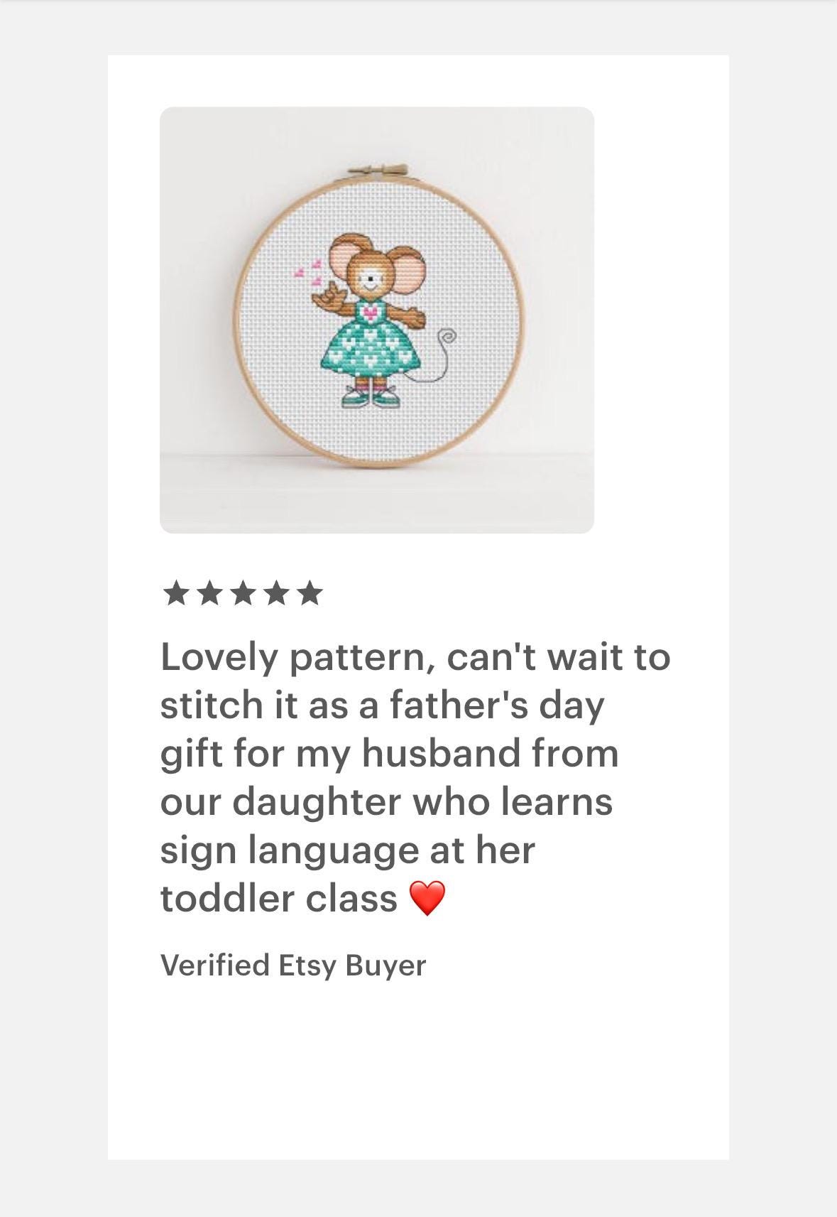 Lovely pattern, can't wait to stitch it as a father's day gift for my husband from our daughter who learns sign language at her toddler class ❤️