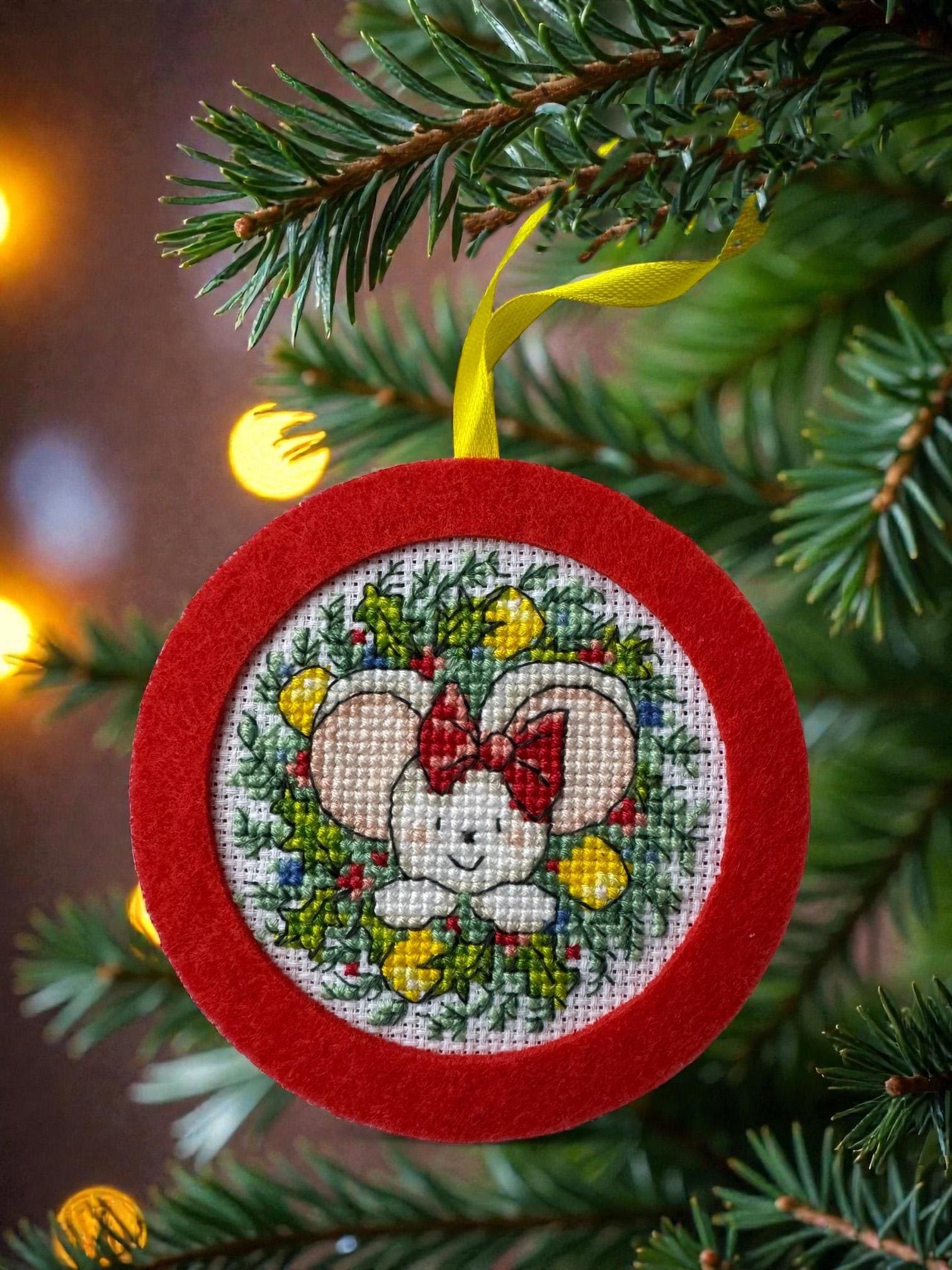 🐭1 x Christmas tree wreath ornament – “Deck the Halls” featuring Flossie Mouse