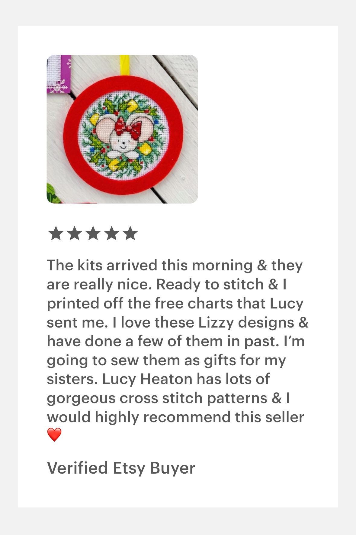 The kits arrived this morning & they are really nice. Ready to stitch & I printed off the free charts that Lucy sent me. I love these Lizzy designs & have done a few of them in past. I’m going to sew them as gifts for my sisters. Lucy Heaton has lots of gorgeous cross stitch patterns & I would highly recommend this seller ❤️